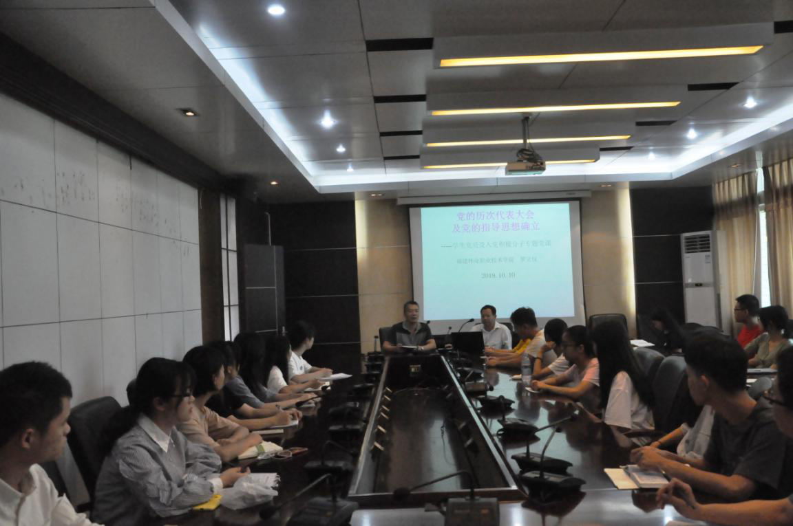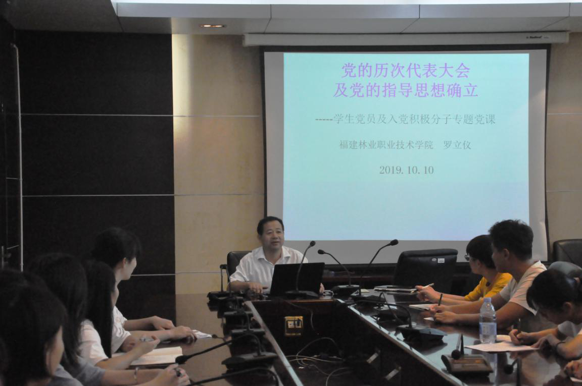 2019年10月10日,院党委委员、副院长罗立仪为艺术设计系学生党员、入党积极分子上了一堂《党的历次代表大会及党的指导思想确立》的党课。罗副院长以深刻的理论造诣,结合丰富的社会阅历,用学生们耳熟能详的语言,从最基础的“党”的概念说起,按照历史唯物主义的观点和方法,将中国共产党的指导思想的发展历史娓娓道来。他深入分析了党的指导思想既能够不忘初心,牢记使命,又能够与时俱进、不断创新的发展历程,阐明了新时代中国特色社会主义的理论依据和社会历史背景,使学生入党积极分子们对党有着更加深刻的认识,进一步强化了入党的决心和意志。