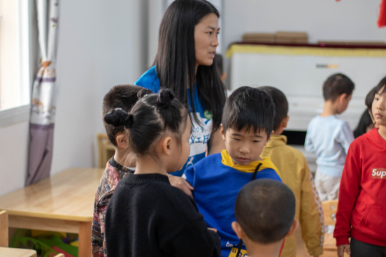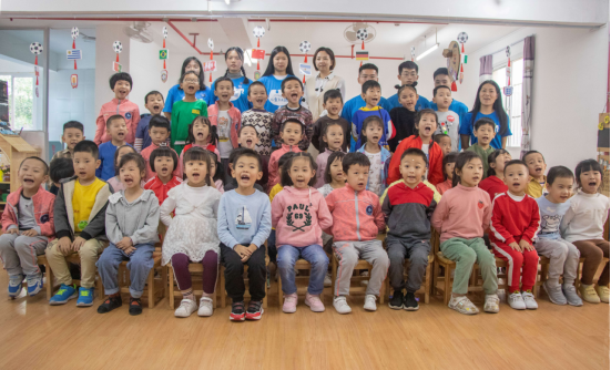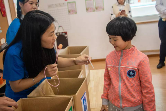 当义工团志愿者踏进教室时,就被小朋友热情活泼的气氛所感染。
