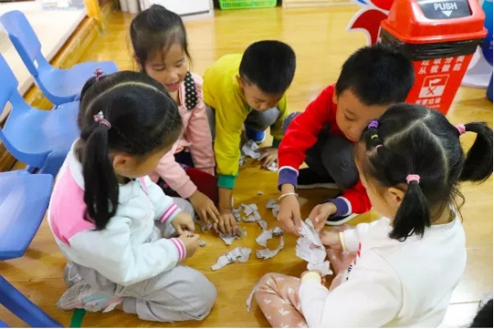 首先,蚂蚁哥哥带领小朋友一起做了一个小游戏,采用撕报纸并恢复完整的游戏让他们感受,制造垃圾很容易但恢复却十分困难。