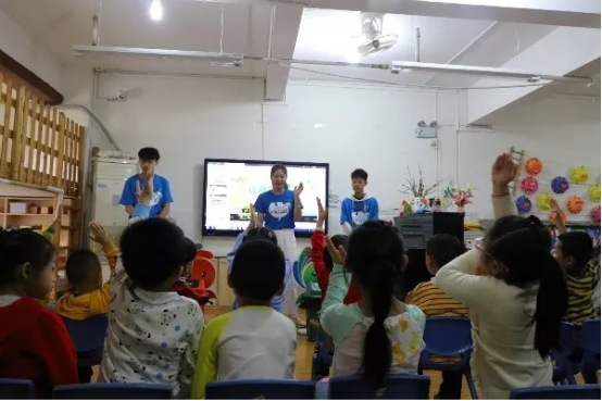 当蚂蚁义工团的蚂蚁哥哥姐姐们走进校园,小朋友们就用他们稚嫩的笑脸和舞动的双手热烈的欢迎哥哥姐姐们的到来。
