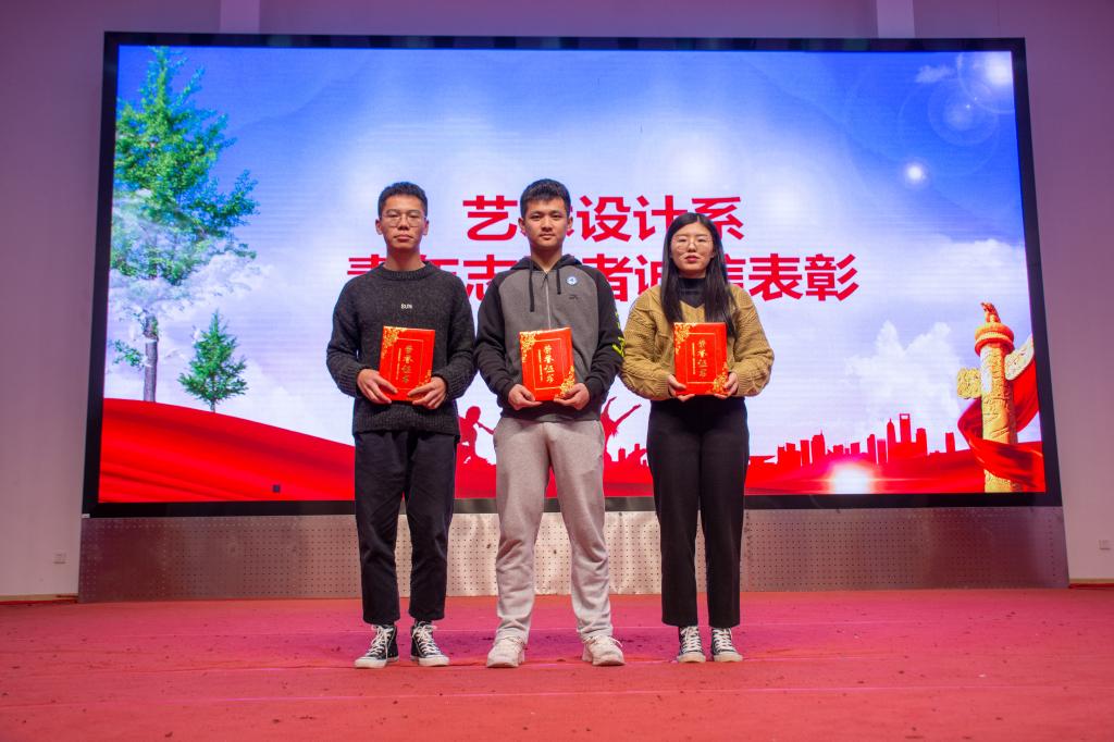 在观影结束后,我们对2019年学生社会实践宣传先进典型进行表彰。获得青年志愿者诚信个人表彰的有:新闻采编与制作1801 李汉源、新闻采编与制作1801 沈静雯、广告设计与制作1802简沭基