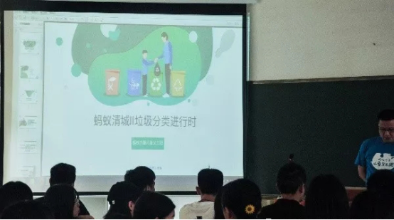 林老师先是通过一个撕报纸的小游戏告诫同学们制造垃圾容易,而处理却显得异常困难,而后又通过PPT演示告诫同学们垃圾分类的现状。每年各式各样的电子垃圾、塑料垃圾等等,因本身难以降解的特性,因此如何处理变得格外重要。