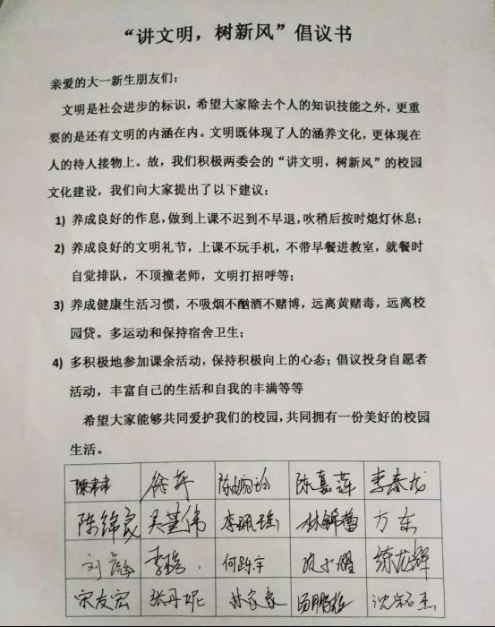 “章服之美谓之华,礼仪之大谓之夏”。中国自古以来就是世界人民眼里的礼仪之邦。福建林业职业技术学院于2019年10月13日至15开展了“讲文明,树新风”的标语征集活动。