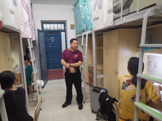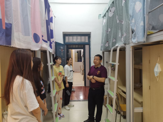 为进一步巩固“党建进宿舍”,维护文明校园安全稳定,正值建党99周年之际,7月1日晚7点,学院副院长罗立仪以及艺术传媒系党政办主任杨自绍走访江南校区19级商务英语学生宿舍。