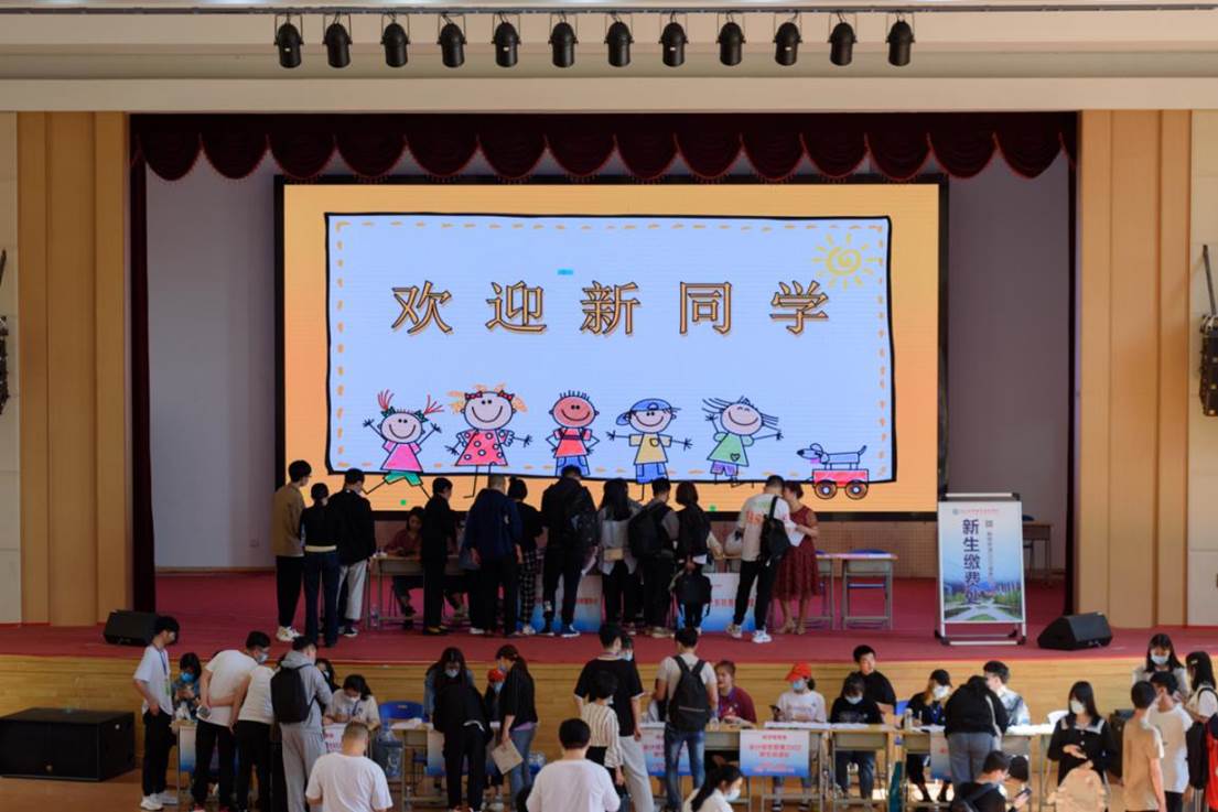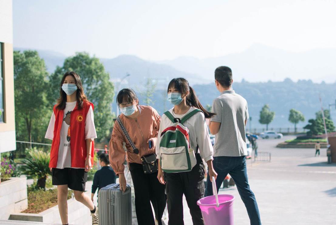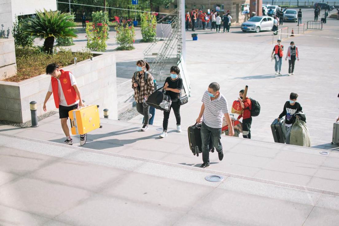 校园里,随处可见的“欢迎新同学”的海报和横幅,前来报道的新生在学生志愿者和助导工作人员的帮助引导下搬运行李,到达宿舍进行入住,各环节井然有序的进行。