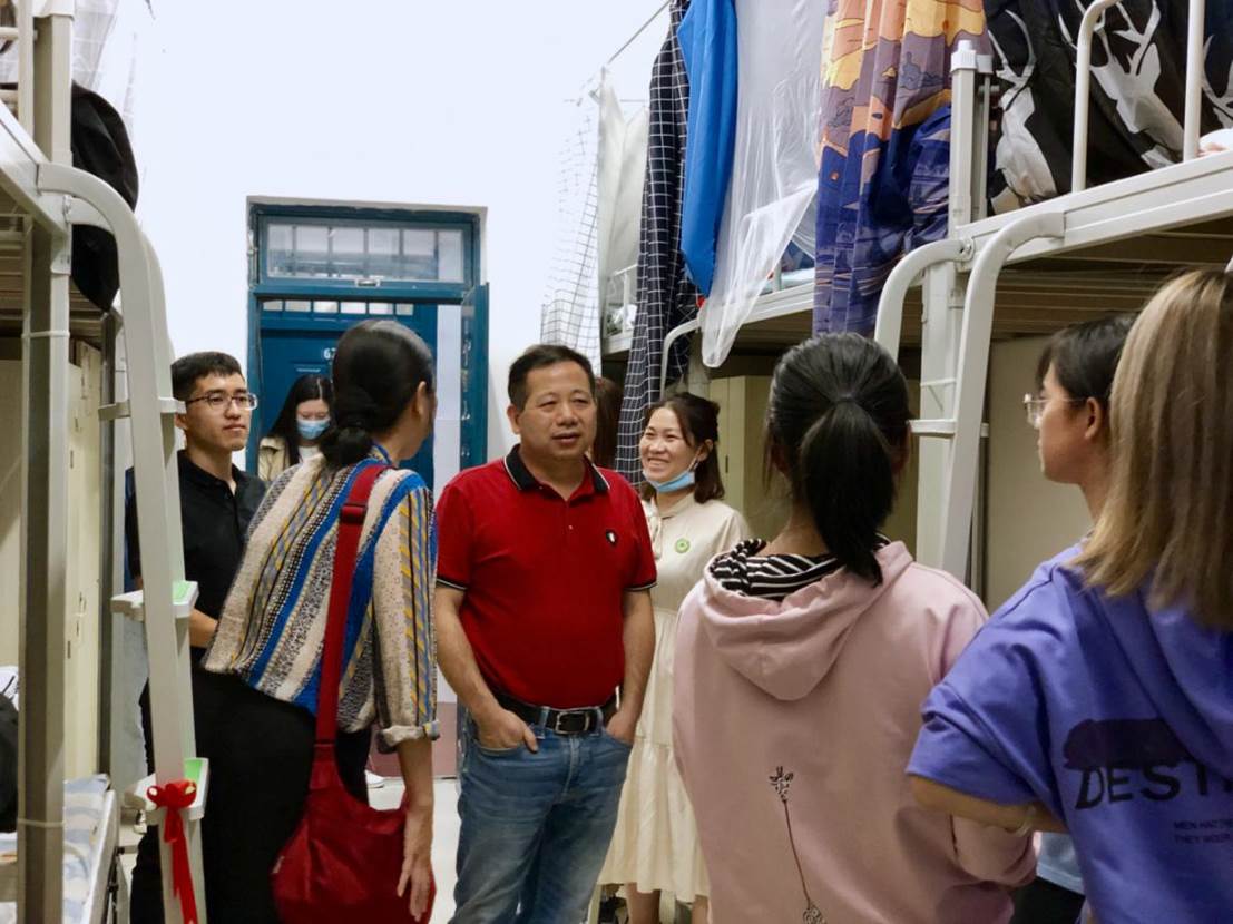 为深入了解我校新生的入住和生活情况,同时引领新生尽快适应新环境。我系本着严谨负责的态度,2020年10月10日晚上7点,罗立仪副院长、系主任曾秀云老师、系学生科长叶章球老师、辅导员雷忠春、唐婧老师及学生会代表走访新生所在的寝室,对刚入学的新生关心慰问。
