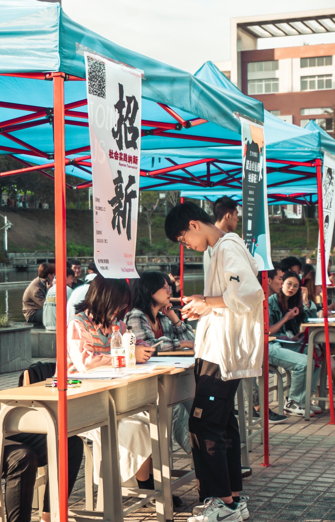2020年10月20日(清晨),19级的学长学姐们开始了如火如荼的纳新现场布置。