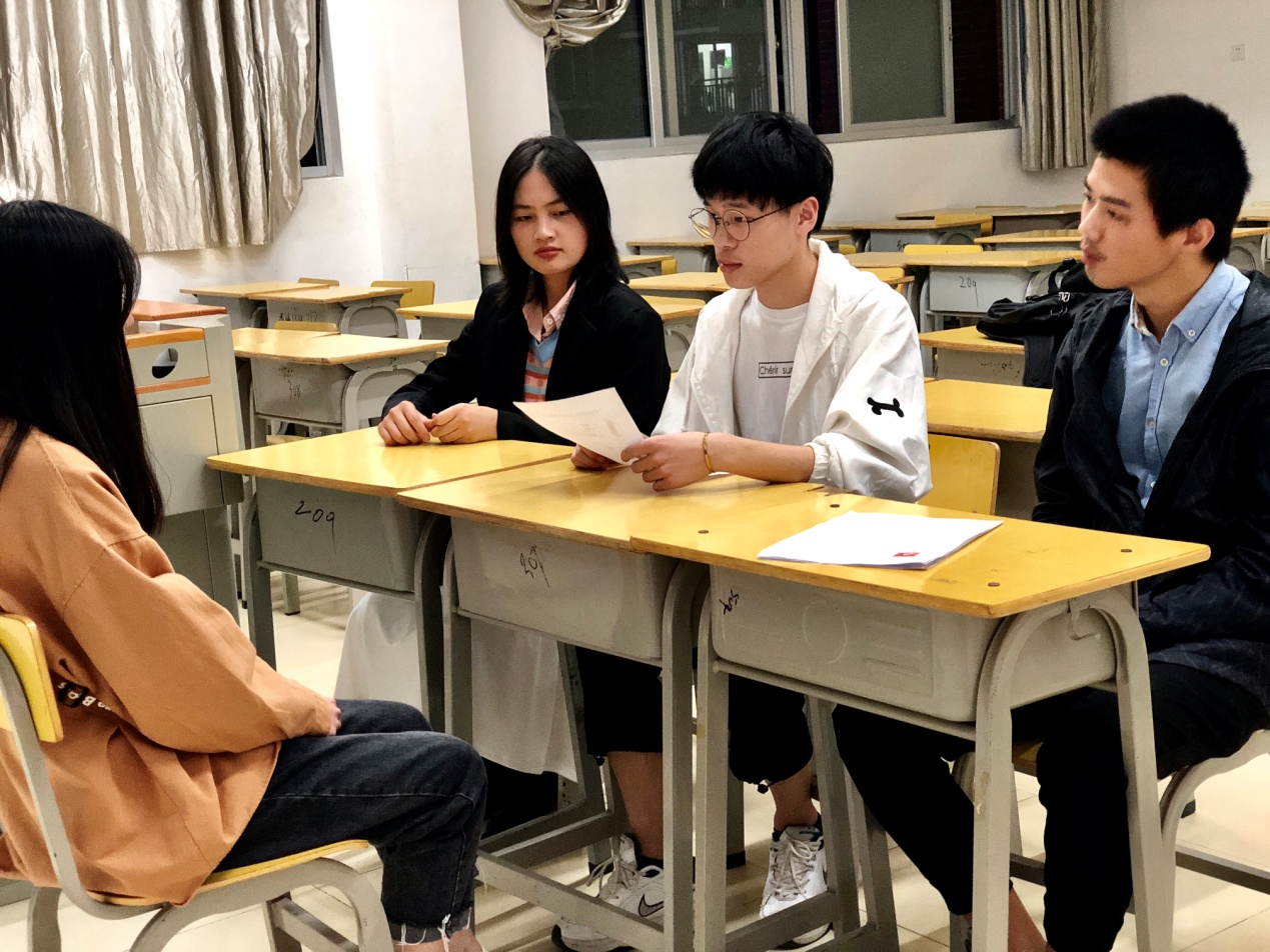 2020年10月20日(晚),天色渐晚,教室里的面试却一点不轻松,每一个部门面试者,都在积极应对学长学姐们为他们精心准备的问答。也许他们的回答并不完美,但是,那股子年轻人的冲劲儿,让每一个人都清楚感受到了。
