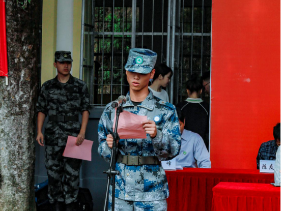 仪式在雄壮的国歌声中开始,鲜艳的五星红旗在场地中冉冉升起。教官将精心组织、科学施训、严格管理,带给同学们丰富的军营体验,引导同学们提高政治思想觉悟,增强国防意识。同时,也希望参训学生坚定理想信念、磨炼坚强意志、树立集体意识、强化纪律观念,高标准、高质量、安全顺利地完成各项军训任务。