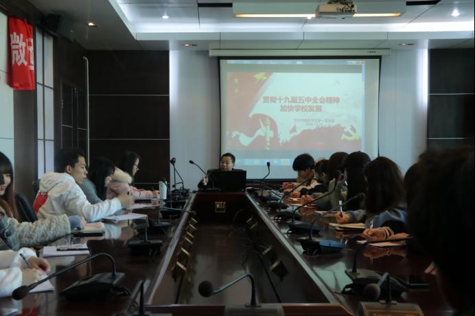 为传达、宣传、学习、贯彻党的十九届五中全会精神,凝聚共识,2020年12月31日,罗立仪副院长莅临艺术传媒系为入党积极分子上党课。会议在综合楼604召开,由艺术传媒系学生第一党支部书记李延卿主持。