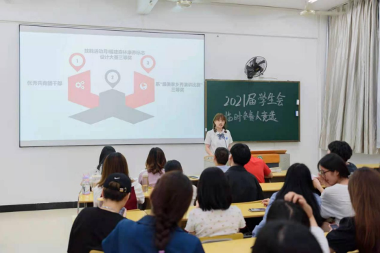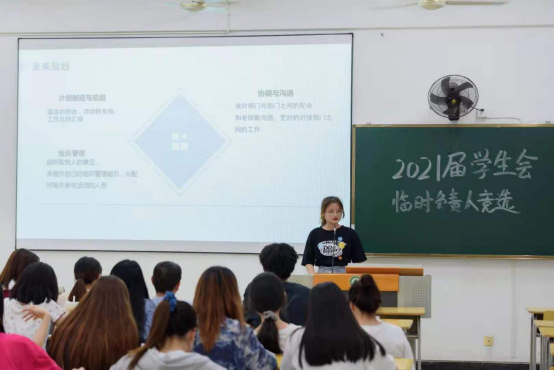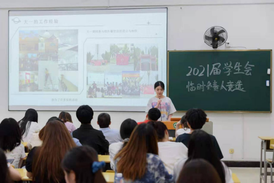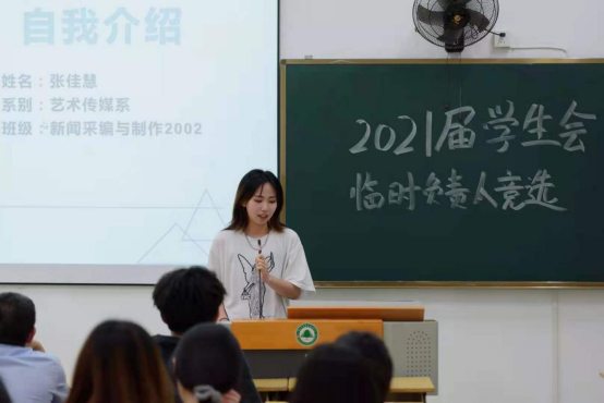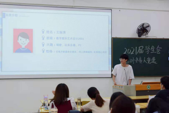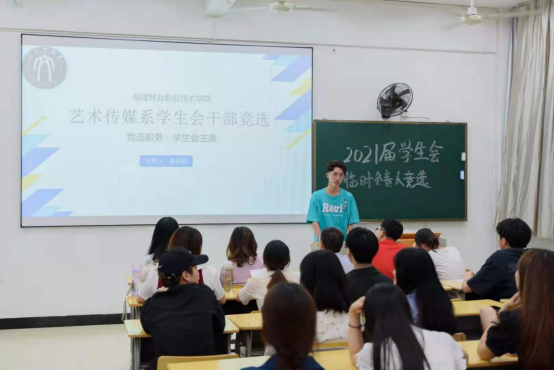 为巩固艺术传媒系团委、学生会组织,顺利实现新老学生干部交接,保持学生干部队伍的稳定性和延续性,推进学生自主管理,2021年6月17日晚上,福建林业职业技术学院艺术传媒在江南校区实训四举行团委学生会换届竞选演讲大会。艺术传媒系党总支书记陈政、学生科长兼团总支书记叶章球、专职辅导员唐婧、雷忠春、孙文欣、李延卿等6位老师以及主席团负责人、各部门现负责人到场担任评委。