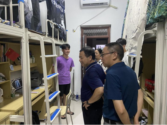院领导认真调研了天麟校区新宿舍装修以及生活设施情况,确保同学们顺利入住宿舍。走访学生宿舍期间,院领导与同学们亲切交谈,向同学们了解假期的生活情况和学习情况,叮嘱同学们在宿舍搬迁时要注意安全,到校后依旧要加强疫情防控。整理好宿舍内务,注重个人卫生和宿舍环境卫生,强身健体,合理作息,以饱满的热情投入到新学期的学习和生活中去。