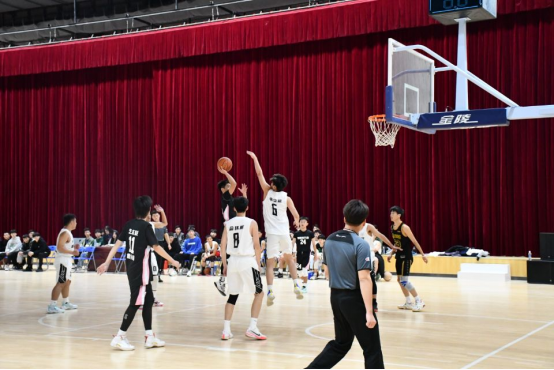 我系篮球队队员在团队的良好配合下展现了轻松传球、巧妙抢球、精彩投篮等精彩动作,令大家高声喝彩。而防守拦球、抢球、罚球更是将全场氛围领向高潮。