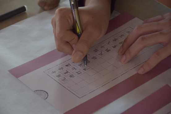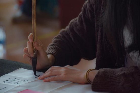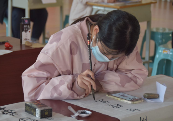 然后是软笔书法组,选手们伴随着轻音乐提笔、着墨,墨香氤氲,聚精会神的完成每一幅作品。有的挥毫泼墨、飘逸洒脱,有的一笔一划、认真专注,有的气韵生动、一气呵成,一幅幅颇具赏心悦目的作品都展现出了深厚的书法功底。