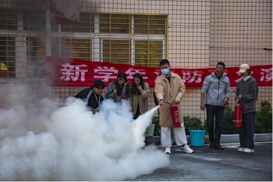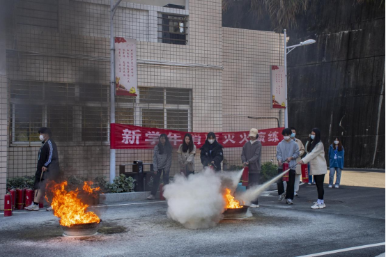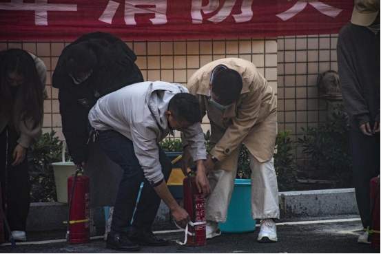 随即工作人员示意各班保卫委员上前,并指导他们如果遇到火灾该如何正确使用灭火器灭火,消防演练的过程秩序井然,一丝不紊。