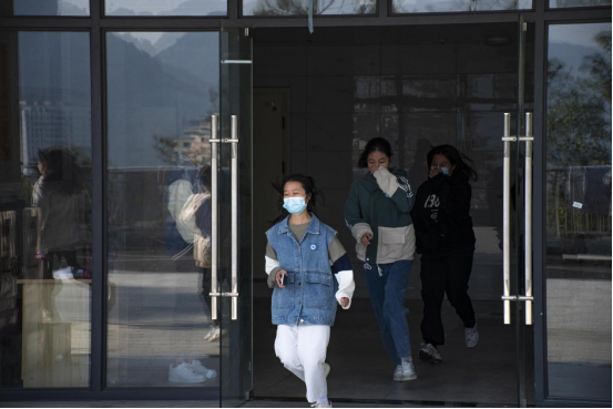 哨声响起,现场模拟演练开始,同学们手拿湿毛巾,紧紧的捂住口鼻防止有害物质的侵入。各个楼层负责人组织同学们快捷有序的离开宿舍楼,前往空旷的操场进行集合。在操场上同学们按照班级位置进行排队,等待工作人员清点人数。