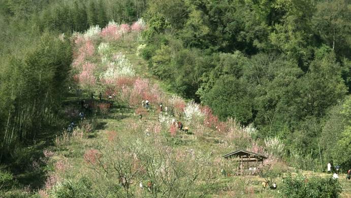 远远望去,粉的、白的花团一丛丛,一团团,一片片……老师们健步如飞,迫不及待地到花丛中感受桃花的芬芳。