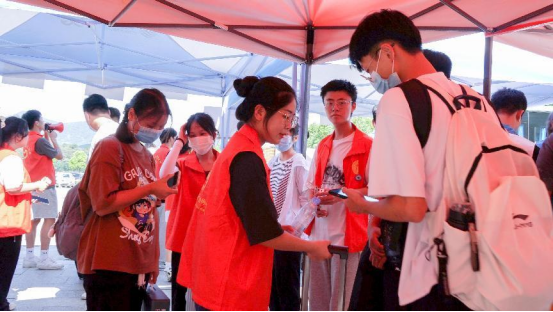 报到现场路标醒目,条幅鲜明,标识明确。在校门口,新生及家长经过体温测量、查验健康码、行程码、核酸报告、行李箱消毒等流程后有序入校。学校严格把控校园防疫安全,为广大师生及入校家长提供了一个更加安全的校园环境。