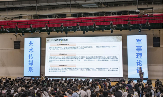 随后,廖士喜老师从国防的基本含义、基础知识讲到现代国防的类型和特征、国际战略形势与国际战略格局、中国周边安全环境的特点以及我国安全面临的新挑战,为同学们详细地介绍了有关国防教育方面的知识,精彩的报告博得了同学们阵阵掌声。