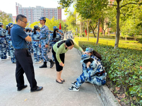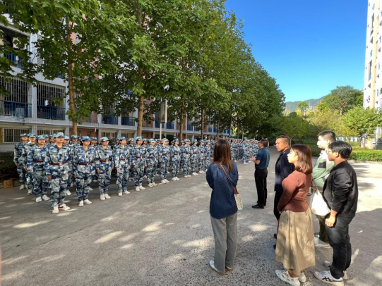 曾秀云主任表扬学子们军训中饱满的热情与意气风发的精神风貌,提醒同学们要尽力而为,在身体条件允许的情况下认真完成军训任务,注意身体的客观条件,不要盲目硬撑,有问题及时跟教官反馈。同时,曾主任还嘱咐同学们根据天气的变化及时增减衣物,注意防寒保暖。欧阳昭勇老师、廖士喜老师、新生辅导员们也与教官和同学们进行了亲切的交流,鼓励教官精心施教,新生刻苦训练,确保军训任务圆满完成。
