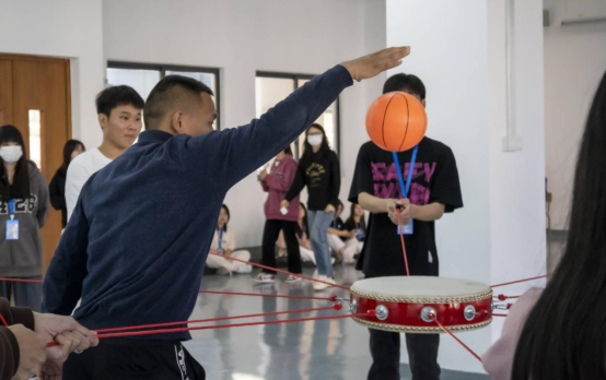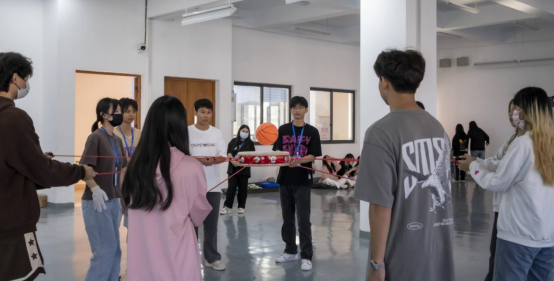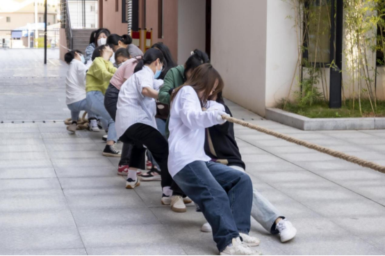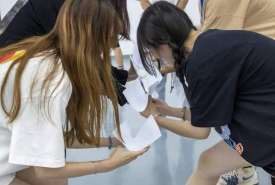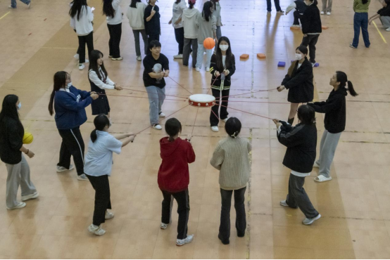 最后是“高山流水”比赛和“摸石头过河”比赛。“高山流水”比赛每队6人,用纸张为小球搭建桥梁,如果球从纸张上掉出,则回到起点重新开始。“摸石头过河”比赛则是脚踩石头,交替行进,接力“过河”,两个比赛都是用时最少的队伍获胜。前者非常考验团队合作的协调性,稍微一点不小心球就会掉落,选手们都屏息敛声,生怕声音会影响手中的球。后者的赛事现场又是另一种场景,选手们步伐矫健、奋力向前,呐喊声、加油声也响彻全场,为校园增添了激情与活力。