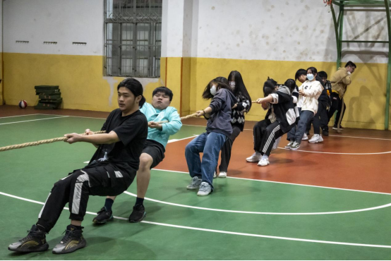 首先,在江南体育馆和艺术楼同时进行羽毛球、拔河比赛。两种比赛都为团体赛,羽毛球比赛分为单打和双打两种类型;拔河比赛为10人一组。比赛开始,参加羽毛球比赛的同学双方选手开始了激烈的拼杀,高远球、扣杀、劈杀、吊球等各路球技被他们演绎得淋漓尽致,比分被不断改写。当拔河比赛的哨声响起,现场赛事也十分激烈,只见参赛的队员们紧握长绳,卯足了劲拼命往后拉,未参赛的同学自发组成拉拉队为队员呐喊加油。哨子声、呐喊声此起彼伏,紧张的气氛将整个活动推到了高潮!