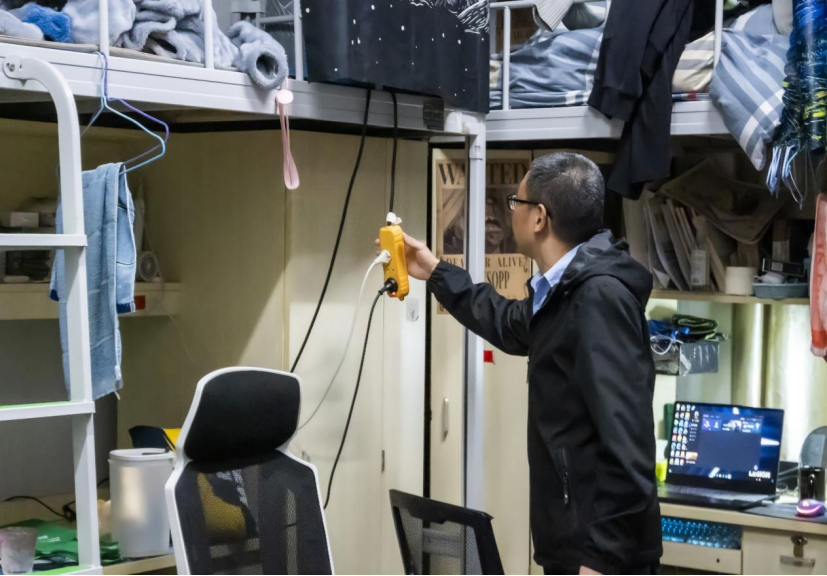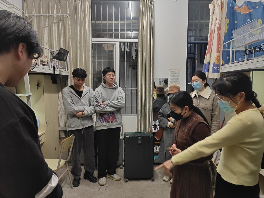 同时,老师们认真检查同学们的生活设施及安全设施,仔细查看消防栓、灭火器等安全设施是否完好;关心学子们的用电安全,查看电线是否老化,有无排插上床等不良现象,是否有私接、乱接电线,使用大功率违规电器的安全隐患问题;了解学子们的需求,协调解决同学们提出的问题,体现了师生间融洽和谐的良好氛围。