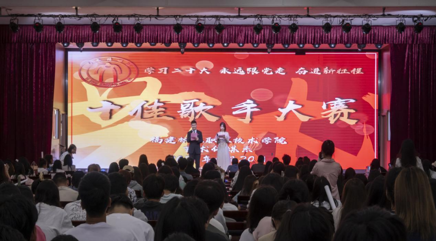 为学习贯彻党的二十大精神,进一步丰富校园文化生活,努力营造积极向上、健康文明的校园文化氛围,充分展示同学们积极向上的精神风貌,2023年4月20日下午14:30,艺术传媒系于江南礼堂举办校园“十佳歌手”大赛。本次比赛由艺术传媒系主办,艺术传媒系团总支承办。艺术传媒系党总支书记陈政,系学生科科长兼团总支书记廖士喜、系教务科科长丁磊、全体专职辅导员担任评委,两委会学生干部、各班同学踊跃到场观赛。