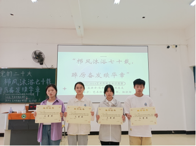 为迎接我校七十周年华诞,加深艺术传媒系学子对校史党史的了解,激发同学们爱国爱校的热情,增强凝聚力、创造力和使命感。2023年4月11日下午两点三十分,艺术传媒系于江南校区实训四(教学楼)607教室举办“栉风沐雨七十载,踔厉奋发续华章”知识竞赛决赛。本次活动由艺术传媒系学生会主办,艺术传媒系学习部和组织部承办。系学生科科长兼团总支书记廖士喜老师以及学生会主席团担任评委。