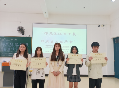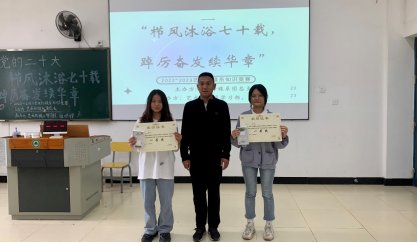 经过几轮的比拼,得奖队伍脱颖而出。参赛选手们对校史校情基础知识的储备使得赛场上不断响起观众们的热烈欢呼声。主持人邀请获奖队伍依次上台,由廖士喜老师为颁发奖状和礼品。
