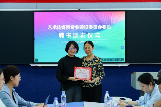首先,曾秀云主任对各位专家的到来表示热烈的欢迎,对各位企业专家长期以来对艺术传媒系工作的支持表示最衷心的感谢。曾主任向与会专家介绍了艺术传媒系专业设置、师资结构以及目前系部专业发展中遇到的瓶颈问题,希望与专家共同探讨构建专业课程体系,使系部专业能更好地服务于区域行业产业;发挥企业优势,通过青年教师跟岗实践,探索校企共育师资的路径。曾主任在发言中强调希望借此次专业(群)建设指导委员会召开,搭建校企合作平台,提高人才培养质量,更好实现校企协同育人的目标。会上,曾秀云主任为企业专家颁发了专业建设指导委员会委员聘书及产业导师聘书。