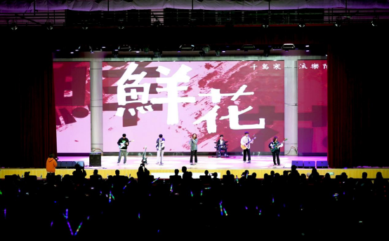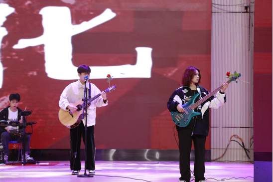 千岛寒流乐队率先登场,歌曲《鲜花》展现着林职院学子的青春激昂、朝气蓬勃的一面,拉开本场晚会的序幕。