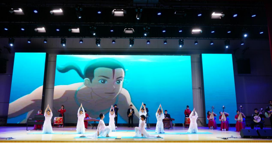 “ 江上调玉琴,一弦清一心”,观众们在悠扬的琴声中观看天麟艺术团民乐团、瑜伽研习会联合带来的表演《大鱼》,举手投足间,尽显温润优雅的气质。