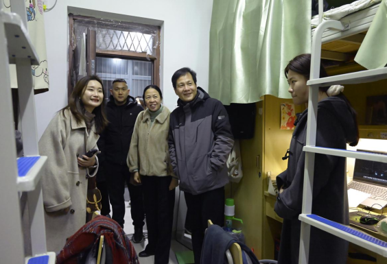 在走访过程中,院系领导与同学们进行了亲切的交流,希望大家珍惜室友情,共同创造团结温馨的宿舍环境,并强调安全意识的重要性,希望同学们注意个人财产安全,在学习和生活中遇到困难要主动联系辅导员,鼓励他们新学期要做好新规划,及时调整状态,整顿精神,以崭新的姿态迎接新学期。同时,领导老师们针对同学们目前在学习、生活中遇到的问题,耐心地答疑解惑,提醒他们要劳逸结合,关注身体健康与心理健康。
