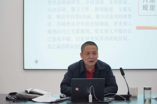 2025年3月28日,在艺术系4楼会议室,艺术传媒系党总支书记范有福讲授《”中央八项规定“和“中央八项规定精神”从制定到实施的重要节点》专题党课,艺术传媒系党总支全体师生党员参加。