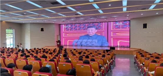阅兵仪式上,徒步方队步伐整齐、英姿飒爽;高超声速武器等新型装备相继亮相,彰显我国国防实力的飞跃提升;空中梯队翱翔天际,引来阵阵赞叹。全体师生通过直播镜头,共同回顾那段烽火岁月,缅怀革命先烈,感受强国强军的时代脉动,接受了一次深刻的爱国主义教育和精神洗礼。
