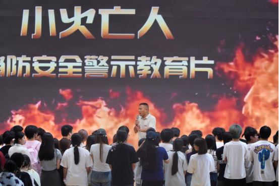 抵达体育馆后,各班同学一同观看消防安全警示教育片。视频通过多个典型案例,生动揭示火灾的巨大危害,让同学们直观感受到火灾的残酷性;同时结合专业细致的消防安全知识讲解,深入阐释预防火灾和应对突发事故的重要方法,进一步增强了同学们的安全防范意识和自救能力。