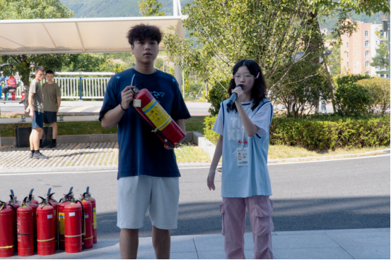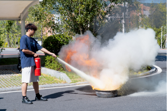 最后,各班保卫委员与各宿舍舍长在工作人员的引导下,前往指定区域,系统学习了各类灭火器的正确使用方法及适用场景。通过现场实操和详细讲解,参训同学掌握了如何根据火源类型选择相应的灭火器,并进行了模拟灭火演练,进一步巩固了消防技能,为校园消防安全打下扎实基础。