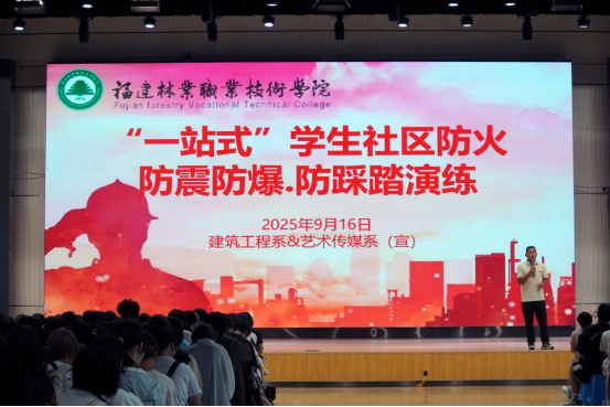 为进一步筑牢校园安全防线,深入贯彻“平安校园”建设要求,强化师生消防安全意识和应急处理能力,2025年9月16日下午,艺术传媒系与建筑工程系于江南校区体育馆联合开展防火、防震、防爆、防踩踏演练。