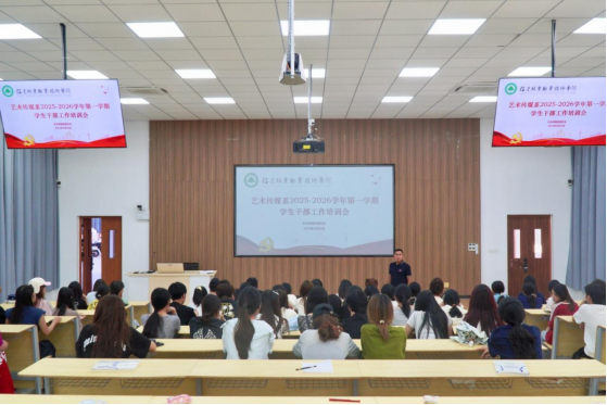 为进一步明确学生干部职责,提升学生综合素质,充分发挥学生干部的模范带头作用,2025年9月28日下午3点,艺术传媒系于艺术楼阶梯教室召开2025-2026学年第一学期干部工作培训会,本次会议由艺术传媒系学生科科长兼团总支书记廖士喜主持,全体学生干部和各班团支书参加会议。
