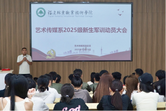 为保障军训安全、有序、高效开展,2025年10月11日晚,艺术传媒系于交通楼阶梯教室(二)开展2025级新生军训动员大会。本次会议由艺术传媒系学生科科长兼团总支书记廖士喜主持,系党总支书记范有福、新生辅导员、全体教官及全体新生助导参会。