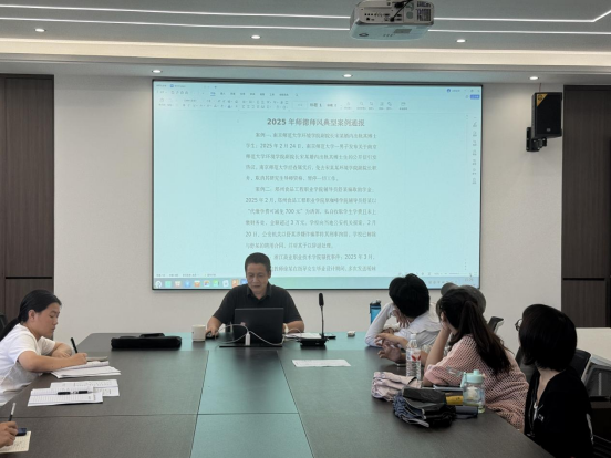 最后,师德师风专题学习聚焦教育系统典型案例,通报违规违纪行为及处理结果。范有福书记要求全体教师以案为鉴,严守师德底线,杜绝有偿补课、学术造假、违规收费等行为,树立“学高为师、身正为范”的良好形象,以高尚师德引领学生成长,为学院高质量发展筑牢师德师风根基。教师们表示会承诺坚守教育初心,严守师德底线,以高尚师德涵养优良学风,为学生成长成才树立榜样。