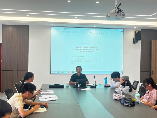 在《习近平给天津大学全体师生的回信》专题学习环节,范有福书记领学回信精神,强调要深刻把握回信中对高校人才培养、科研创新的殷切期望。范书记提出全体教师要立足专业教学,在课程中挖掘红色元素,培养文化自信,把“强国有我”的信念融入课程思政,培养兼具艺术素养与家国情怀的高素质人才,为文化传承创新贡献教育力量。