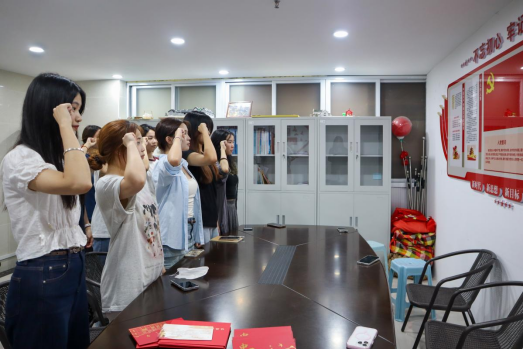 第一议题学习后,全体党员在9号楼一站式社区的党旗展板前高举右拳,重温入党誓词以此拉开党员“政治生日”仪式的序幕。随后,党支部书记卢欣颖为过“政治生日”的党员逐一发放支部为党员们精心准备的“政治生日”贺卡,希望大家以‘政治生日’为新起点,既做“第一议题”制度的‘学习者’,更做‘执行者’,让初心在理论学习与实践服务中持续闪光。