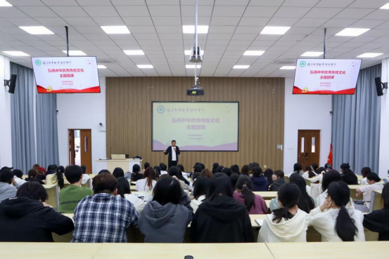 为推动中华优秀传统文化在青年学生中的传播与传承,增强学生的文化自信与民族认同感,2025年10月28日中午,艺术传媒系于艺术楼一楼阶梯教室开展“弘扬中华优秀传统文化”主题团课。系学生科科长兼团总支书记廖士喜主讲,大一大二各班班长、团支书及两委会全体负责人参加学习。