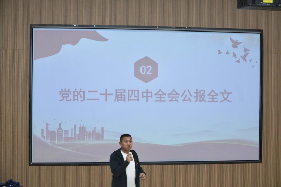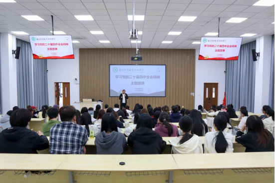 为深入学习贯彻党的二十届四中全会精神,2025年10月28日中午,艺术传媒系于艺术楼一楼阶梯教室组织开展学习党的二十届四中全会精神主题团课。系团总支书记兼学生科科长廖士喜担任主讲,大一、大二各班班长、团支书及两委会全体负责人参加学习。