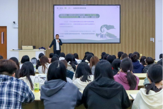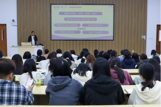 结合青年学生的使命担当,廖老师强调,同学们要深刻领会全会精神,增强对中国特色社会主义制度优越性的认同,筑牢信仰之基。他鼓励大家练就过硬本领,提升综合素质,将个人理想融入国家与民族事业,勇担时代重任,为实现社会主义现代化贡献青春力量。