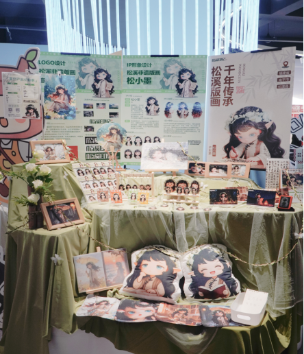 设计说明:根据“松溪印纪”文字进行设计。Logo的灵感来自松溪版画,以标准字设计为主体。让文字笔画融入松溪版画的刻刀感,外观以方正的形态来体现雕刻用的木板,呈现出独特的“刀味”与“木味”。Logo色彩以深绿色为主色调,红色为辅助色,既能体现松溪生机勃勃,又能与板画色调相结合。IP形象以传承与创新松溪非遗版画技艺为核心,将松溪版画的四大核心元素(刻刀、木板、印痕、乡土风情)进行拟人化,精灵形象与松溪版画的文化底蕴深度融合,旨在打造一个兼具传统韵味与童话感的IP,让松溪版画技艺在年轻群体及更广泛圈层中焕发新生,成为非遗文化活态传承的生动载体。