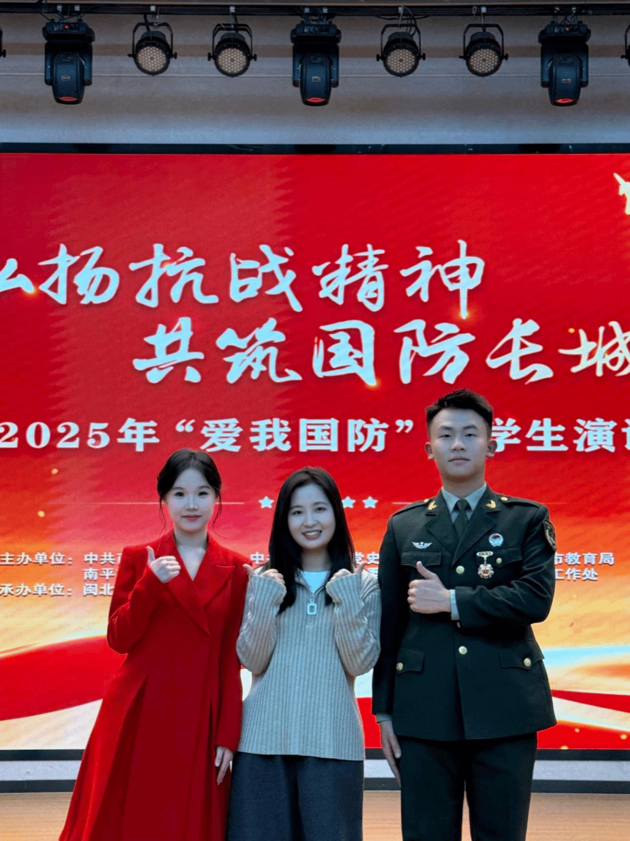 12月3日,由中共南平市委宣传部、中共南平市委党史和地方志研究室、市教育局、市退役军人事务局、团市委、南平军分区政治工作处联合主办的南平市2025年“爱我国防”大学生演讲比赛在闽北职业技术学院圆满落幕。我系学子李承达、王涵凭借作品《以我之青春 守山河无恙 以我之热血 筑国防长城》荣获一等奖。