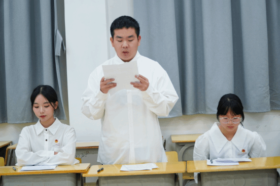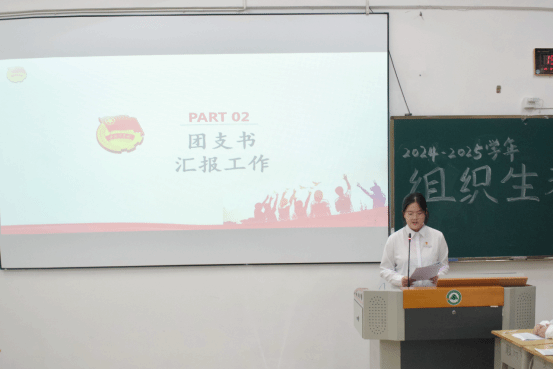 商务英语2503班团支部书记易可心代表支委会作工作报告,系统总结了过去一学期在思想引领、组织建设等方面的工作成效与不足,并提出了明确的改进方向与下一步计划。